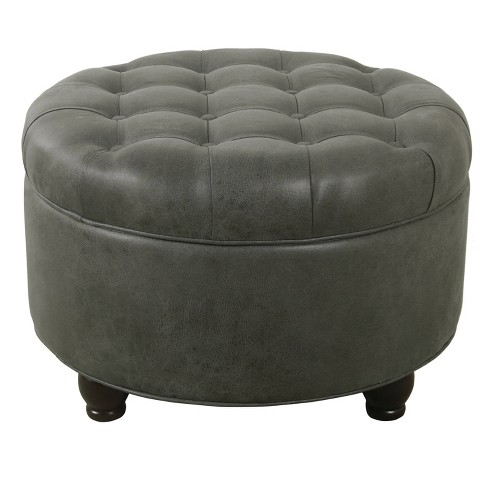 Product Name: Gray leather storage ottoman top
