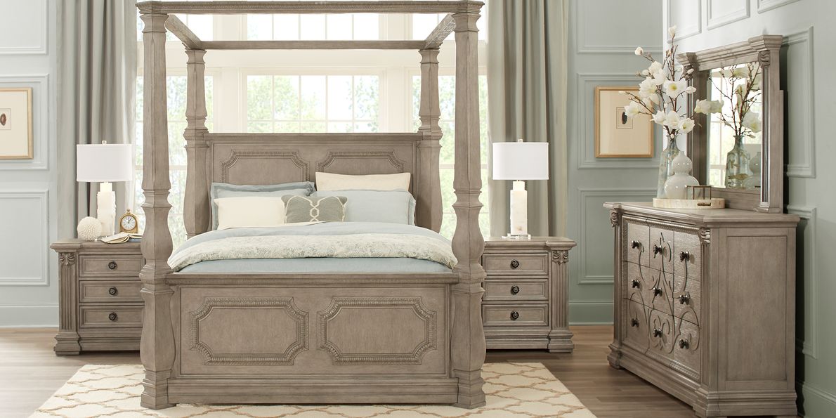 Product Name: Gray canopy bedroom set top