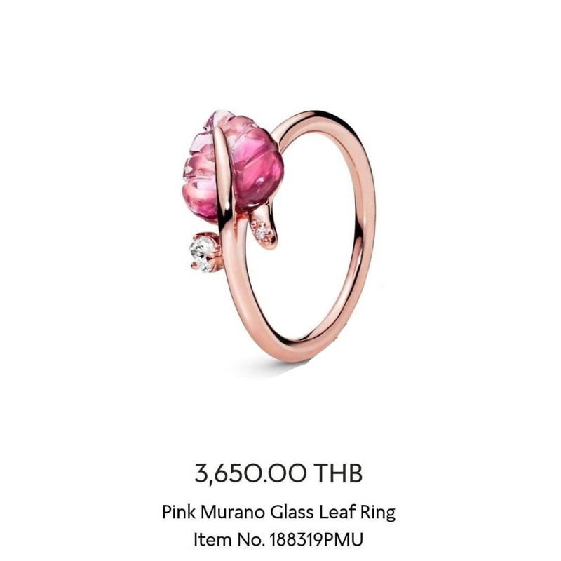 Product Name: Pandora pink murano glass leaf ring top